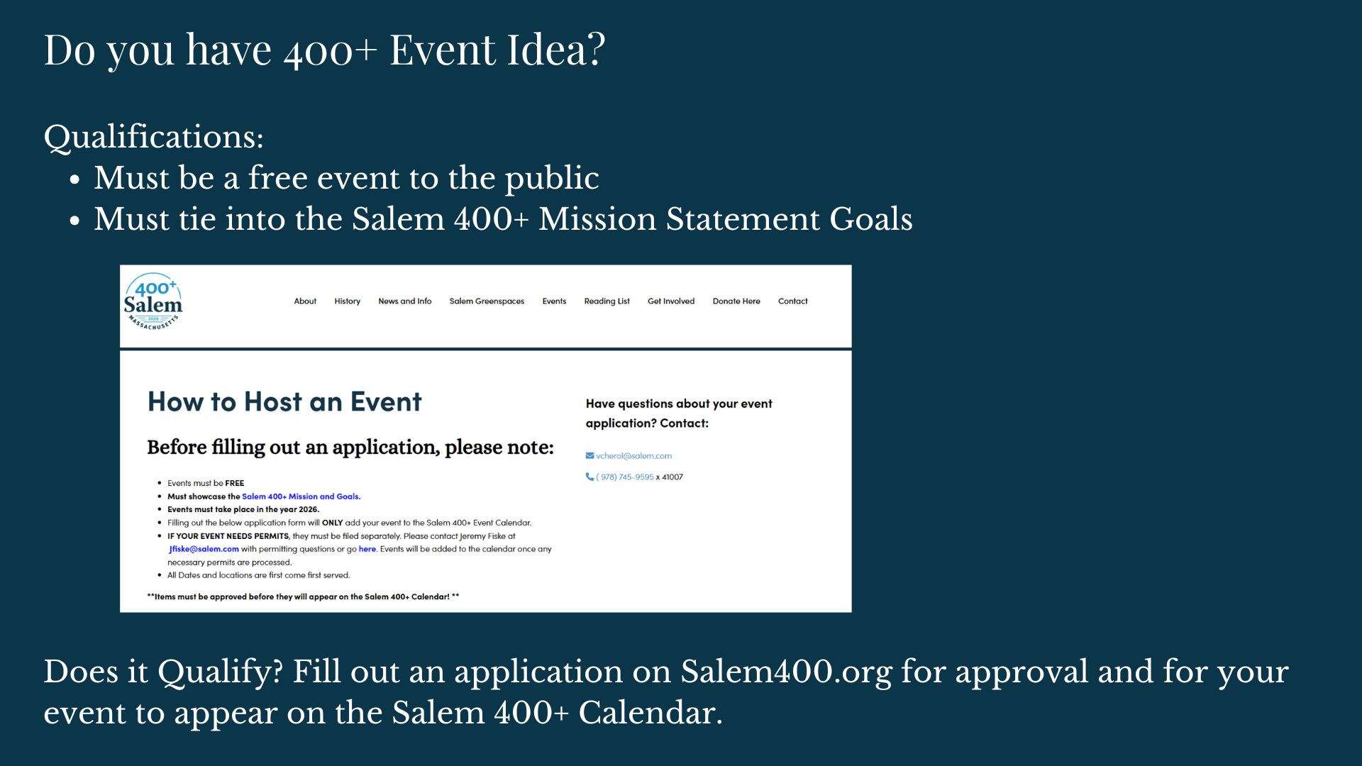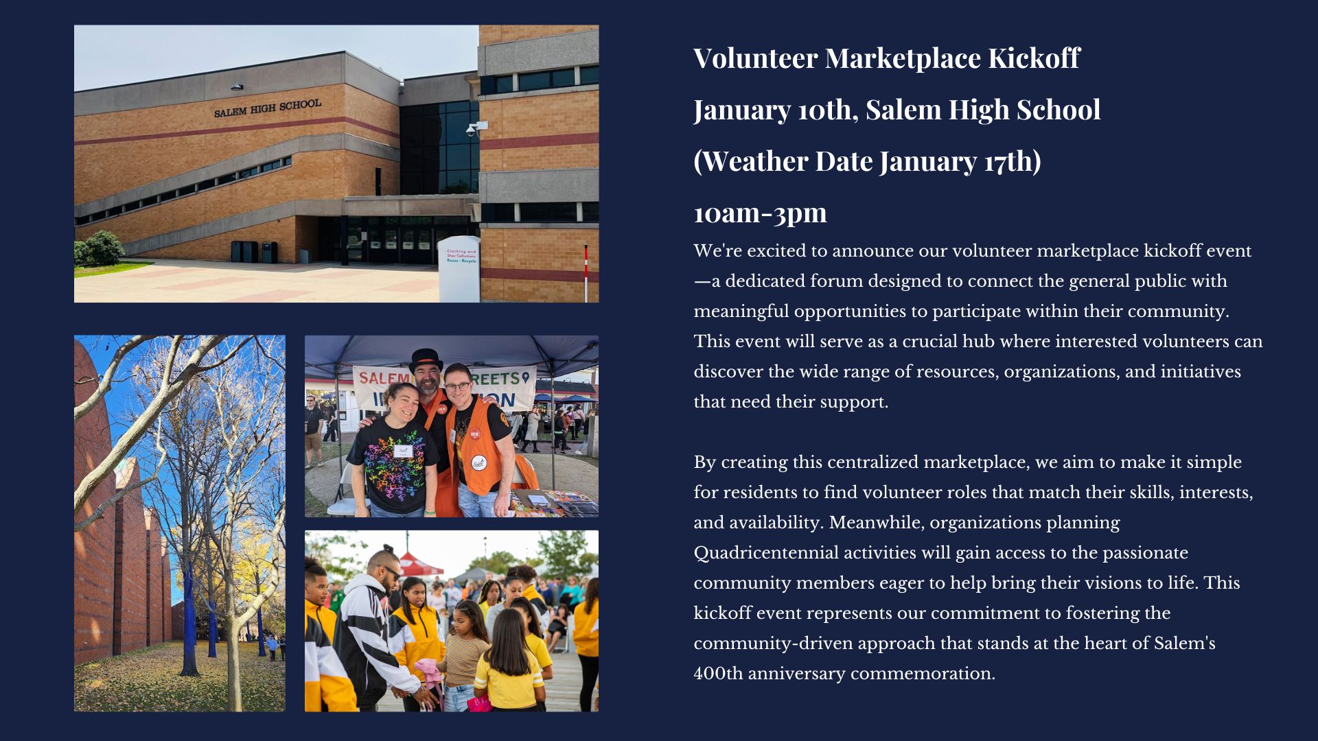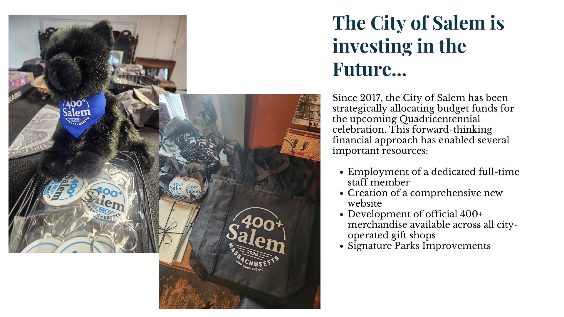 For more information about Salem 400+ or to learn about volunteer opportunities, residents can visit Salem400.org. See below to see the slides that were presented at the presentation.